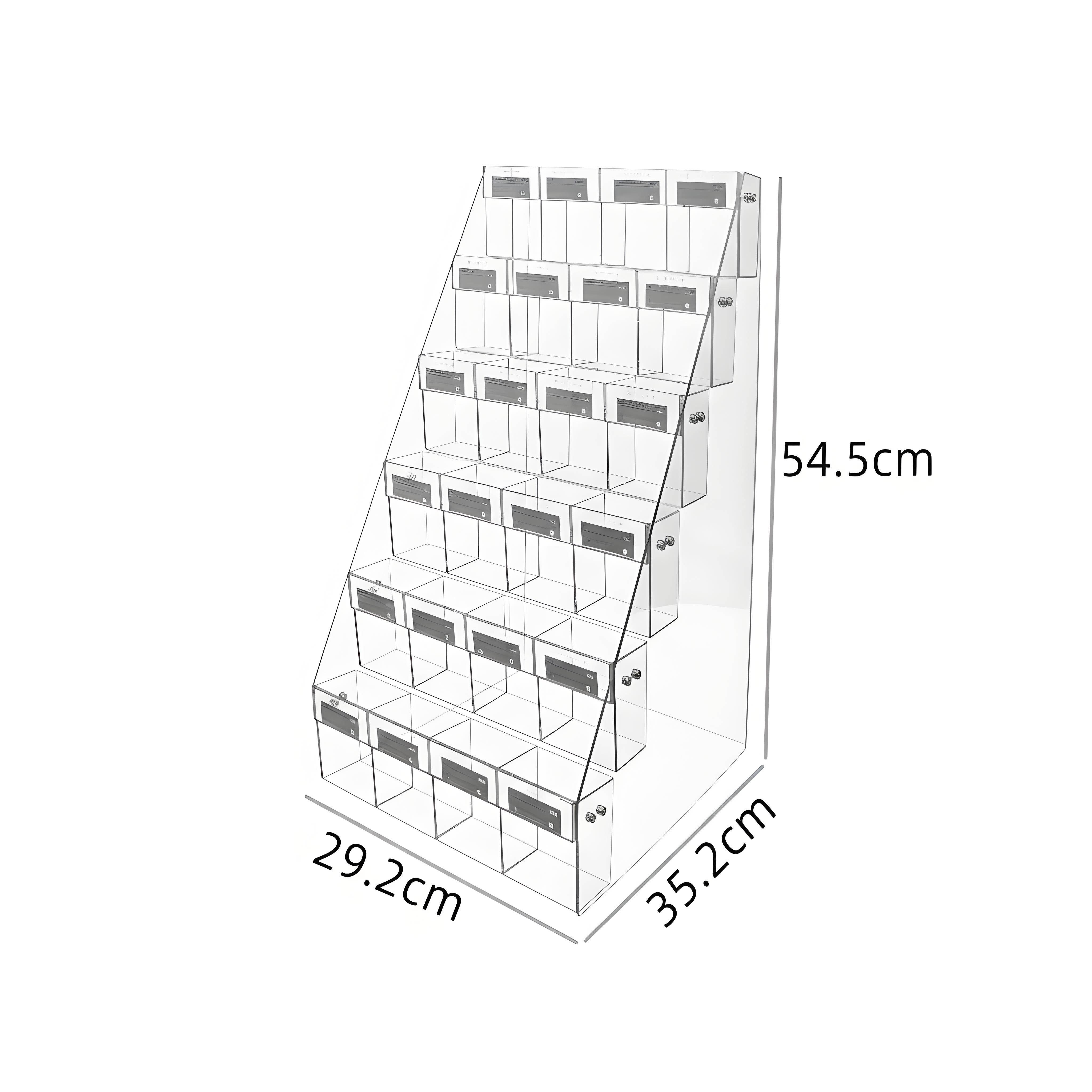 L'espositore acrilico a scaletta, progettato per bustine di Pokémon, One Piece, YuGiOh, Magic, Dragonball e Ultraman, presenta dimensioni precise di 54,5 cm in altezza, 35,2 cm in profondità e 29,2 cm in lunghezza. Questa soluzione è perfetta per professionisti delle vendite in diretta, offrendo un'organizzazione efficiente e una visibilità ottimale dei prodotti esposti.