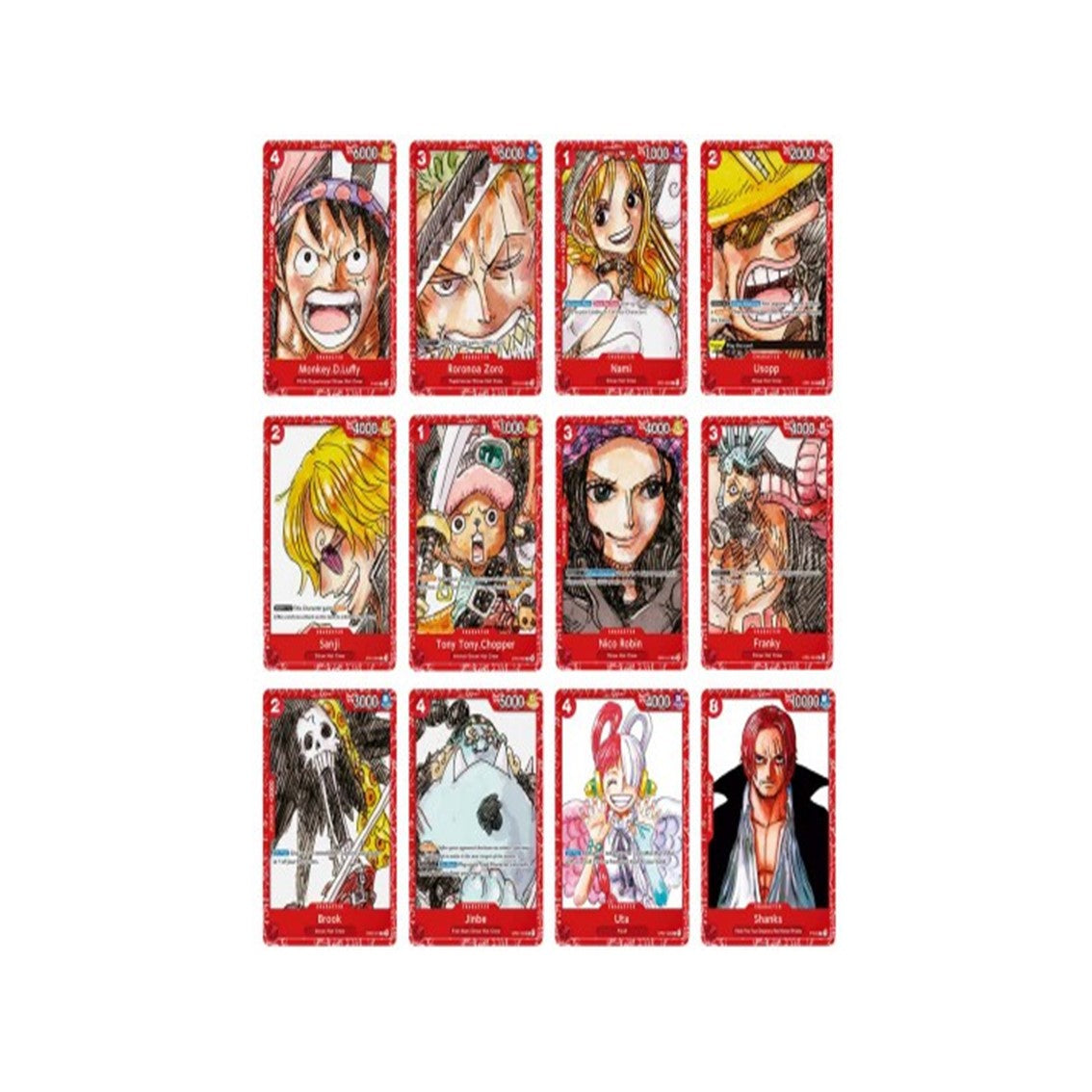 - Le 10 carte dei pirati della Ciurma di Cappello di Paglia, assieme al leggendario Shanks e la star della musica Uta!
